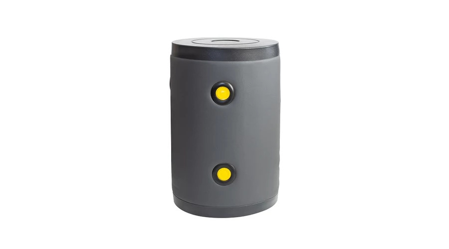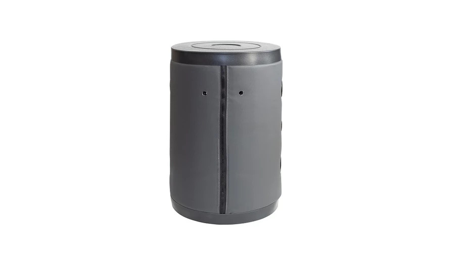 Apamet STIL 50 hűtési / fűtési puffer tartály hőszivattyús rendszerekhez, 50 mm vastagságú PU szigeteléssel, sötétszürke műbőr külső burkolattal, belső zománcozással és Mg anód védelemmel. 10 bar üzemi nyomásra, 2x2 db belső menetes, 6/4" csatlakozással szállítva.