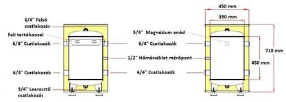 - Tartálytest teljes külső átmérője 450 mm, magassága 710 mm