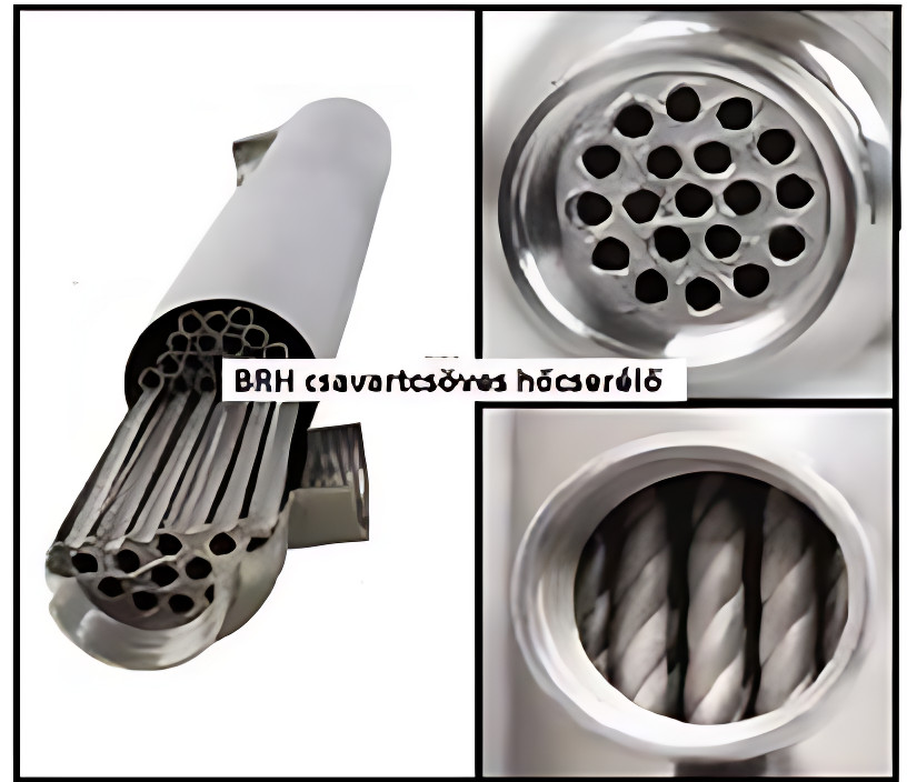 BRH hőcserelő 105 kW / ΔT 60°C-nál, 6/4"bm-2"bm, rozsdamentes, csavart-csöves. Tmax: 200°C, Pmax: 12 bar, Felület: 0,85 m2, BRH-1271