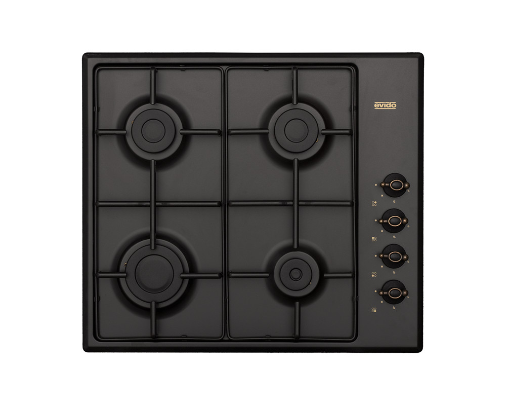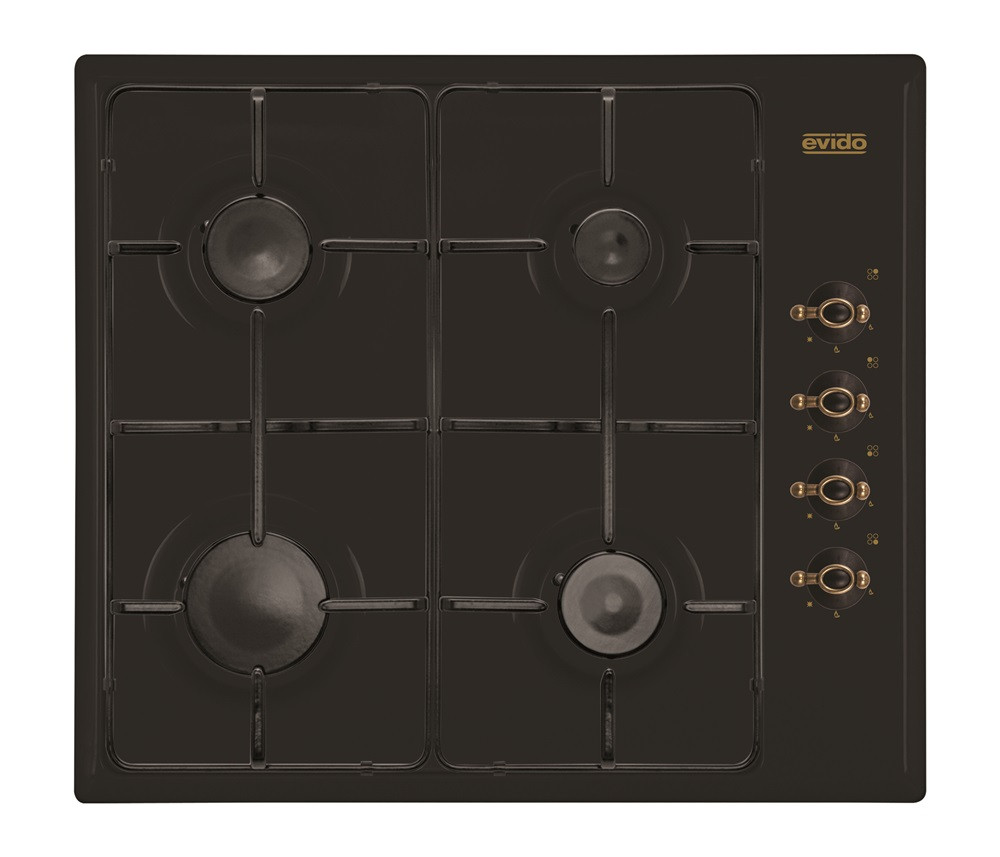 EVIDO RUSTIC-H 60A gáz főzőlap, 60 cm, 4 égő, zománcozott edénytartó, antracit/bronz, HGR60A.1