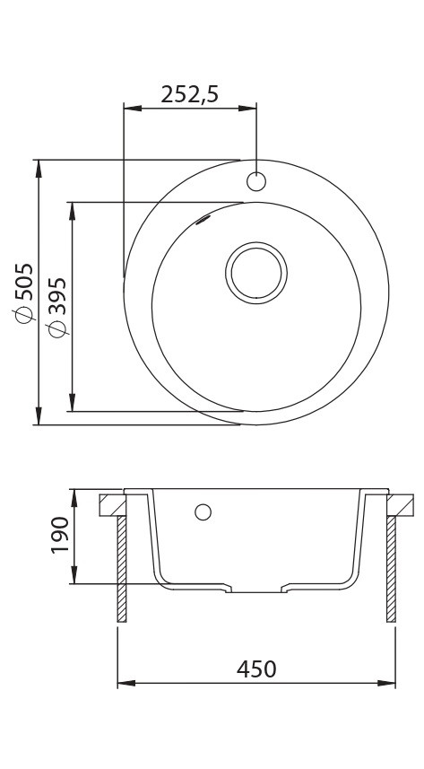 - Méret: 505 (medence átmérő) / 190 mm