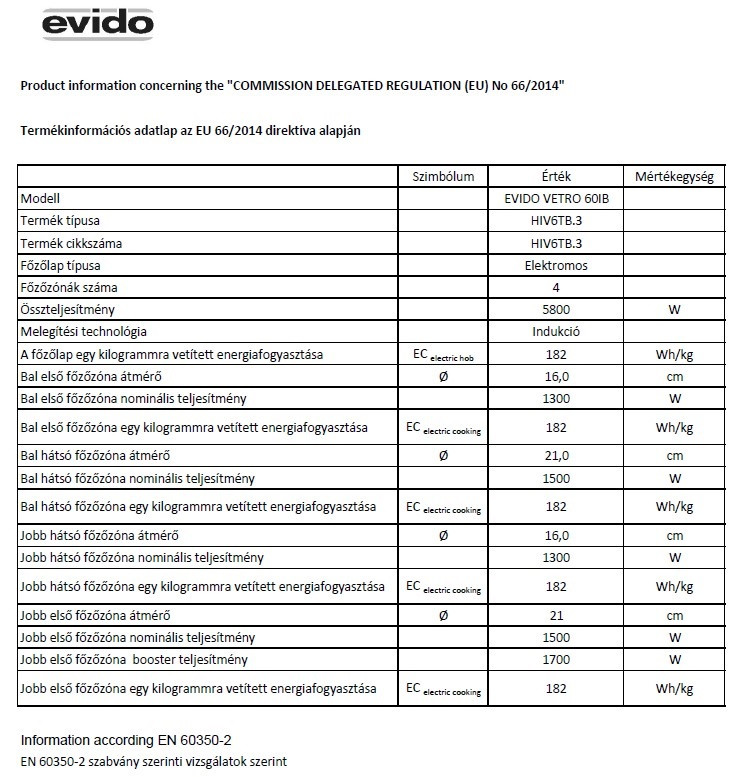 EVIDO VETRO 60IB INDUKCIÓS FŐZŐLAP