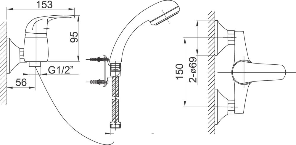 FERRO Vasto egykaros króm kerámiabetétes fali zuhany csaptelep zuhanyszettel / BVA77