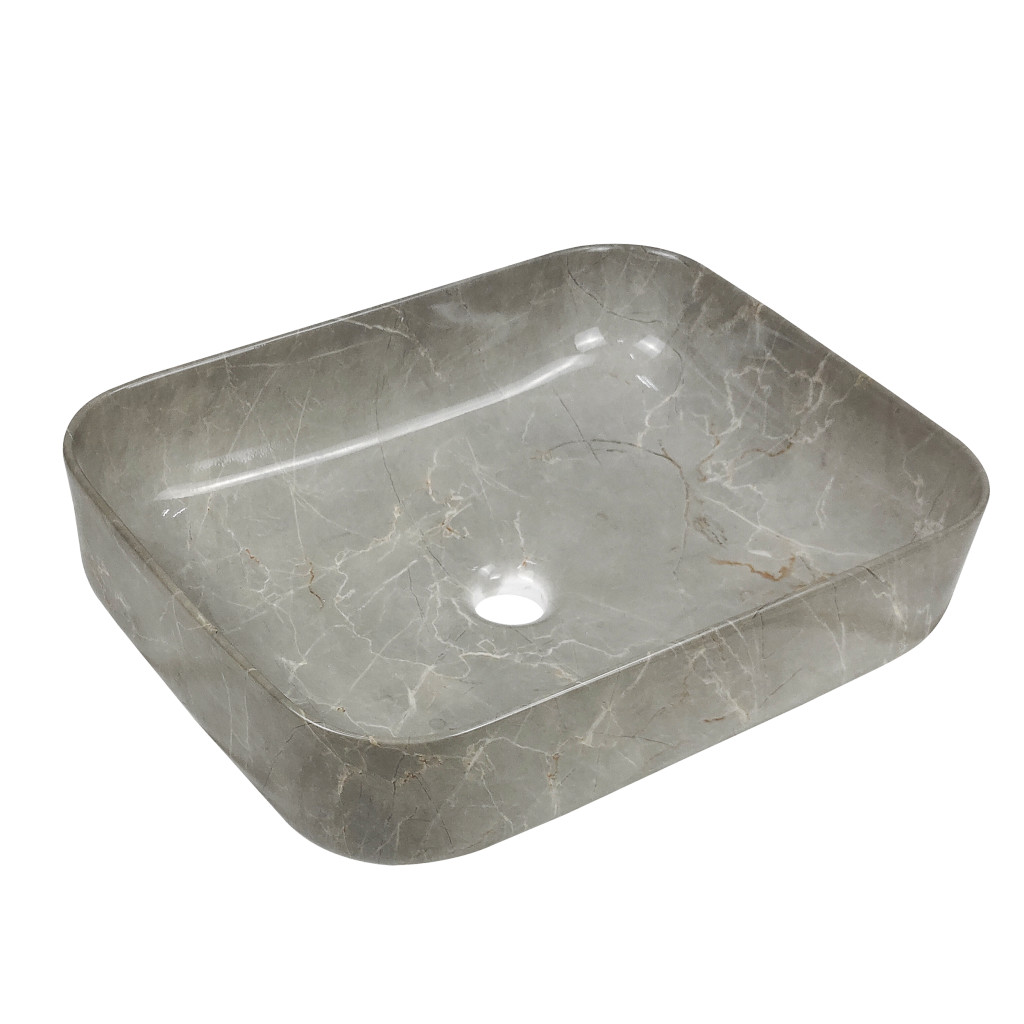 Invena FLORINA mosdókagyló, négyszögletű, asztali, 51 cm, márvány hatású, fényes, szürke, CE-40-705-C