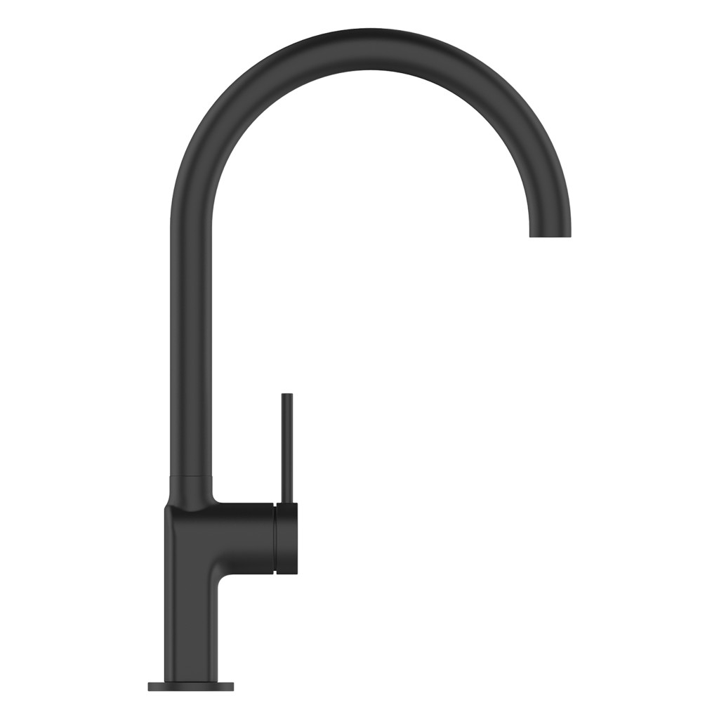 A matt fekete színű konyhai csaptelep tökéletesen illeszkedik a modern lakberendezési trendekhez, és nemcsak funkcionális, hanem dekoratív kiegészítője is lesz. A forgatható kifolyócső kényelmes használatot biztosít, a víztakarékos perlátor pedig ökológiai szempontból is előnyös lesz. A Kalitea egy minimalista megoldás a különféle stílusban berendezett funkcionális konyhákhoz.