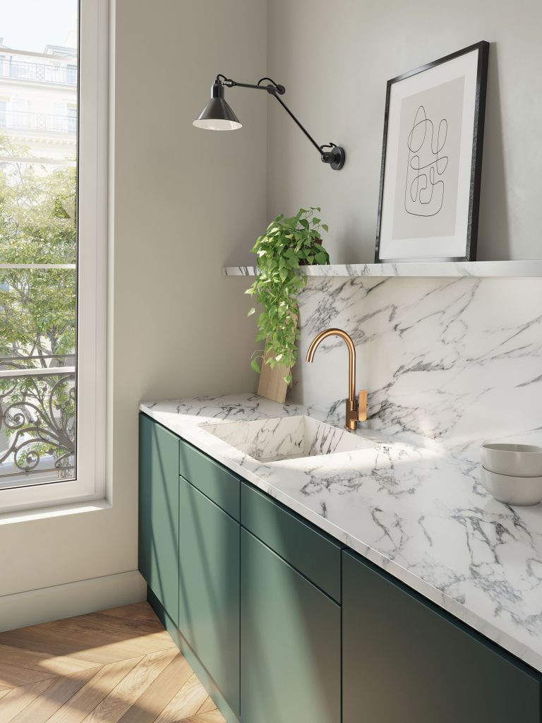Az ipari szín és a modern forma érdekes kombinációja miatt a Neri Plus mosogatócsaptelep remekül mutat loft és eklektikus belső terekben. Csiszolt felületű réz színe kiváló alternatívája a klasszikus krómnak és a nagyon modern feketének. A kifolyócső lekerekített formájú, ami finom megjelenést kölcsönöz az egésznek. A fogantyú egyszerű formájú és oldalra van szerelve, ami kényelmesebbé teszi a használatát. Az egész egyszerű formájú, de látványos kialakítású. A Neri Plus réz mosogatócsaptelep egy pultra szerelhető modell, amelyet egy előre kivágott nyílásba szerelnek a pultra. A gyors szerelési rendszer még könnyebbé teszi a csaptelep felszerelését. Ezenkívül műanyag perlátorral is rendelkezik. Feladata a víz levegőztetés, így az a benyomásunk, hogy több víz folyik, mint valójában. Ez lehetővé teszi a háztartási megtakarítások növelését a kényelem elvesztése nélkül. A Neri Plus mosogatócsaptelep jellemzői: • Látványos, csiszolt felületű réz • Lekerekített, U alakú kifolyó • Mozgatható kifolyó a nagyobb kényelem érdekében • Gyors és egyszerű pultra szerelés • Műanyag perlátor a vízfogyasztás csökkentése érdekében Ötlet a Neri Plus réz mosogatócsaptelep elrendezéséhez A réz szín ideális kiegészítője a loft és ipari stílusú belső tereknek, fekete felületekkel, betonfalakkal és fém díszítőelemekkel. Gyönyörűen mutat a sokkal világosabb színekkel is, beleértve a steril fehéret, például a markáns erezetű márványt. Kiváló választás világos és sötét színű gránit mosogatókhoz. A réz gyönyörűen harmonizál a fényes felületekkel, elegáns stílust teremtve velük. Ez egy nagyon jó választás a kifinomultabb dizájnhoz is, pl. olíva zöld színű frontokkal, sötétkék metrócsempe burkolattal vagy pasztell színekkel. Az aranyszínű Neri Plus mosogatócsaptelepet érdemes más réz elemekkel kombinálni, pl. szekrényfogantyúkkal vagy kis háztartási gépekkel, hogy az aranyszínű mosogatócsaptelep harmonizáljon a konyha többi részével. Az aranyszínű Neri Plus mosogatócsaptelep eredeti megoldás ipari, loft, eklektikus és modern stílusú konyhákba. A mozgatható kifolyó és a víztakarékos perlátor nagyon praktikus megoldássá teszik.