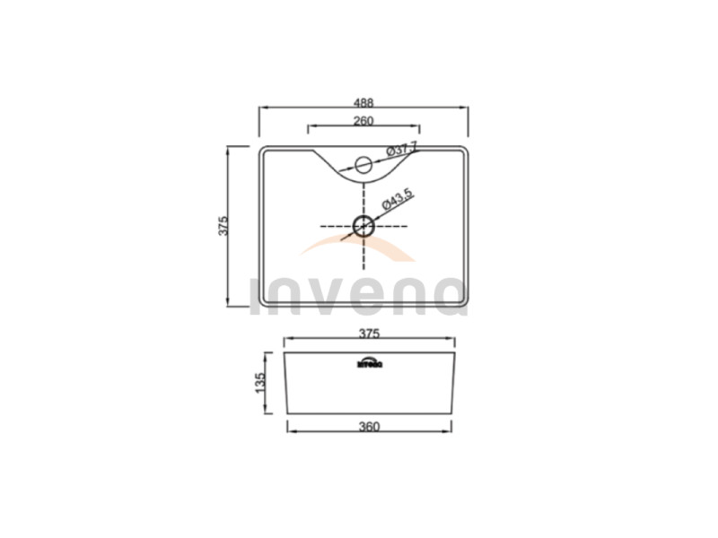 Invena NERI mosdókagyló,négyszögletű, leeresztővel, asztali, 49 cm, fehér, CE-22-001-W