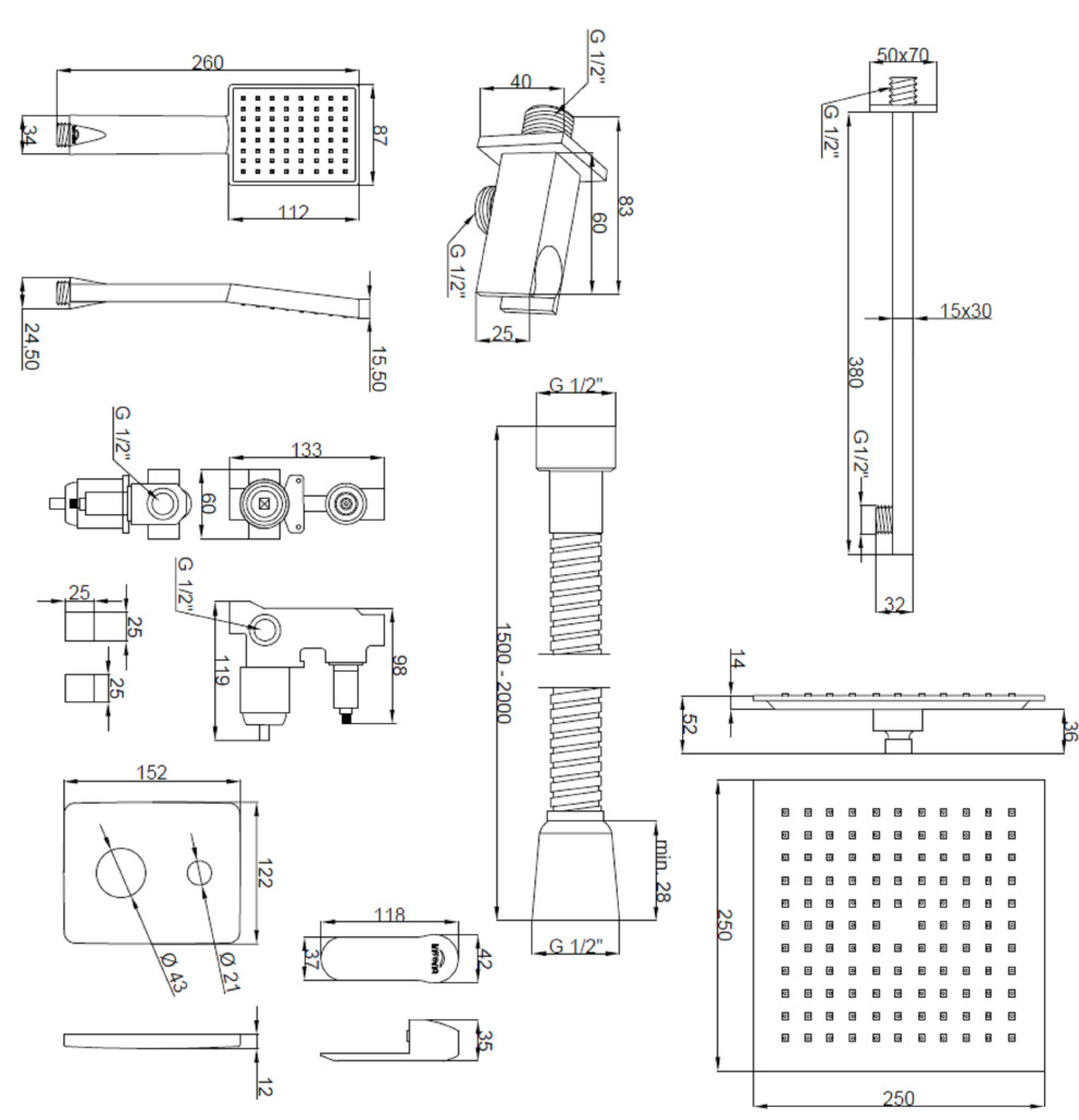 Invena SIROS falsík alatti zuhanyrendszer szett, króm, BS-90-0K2-A