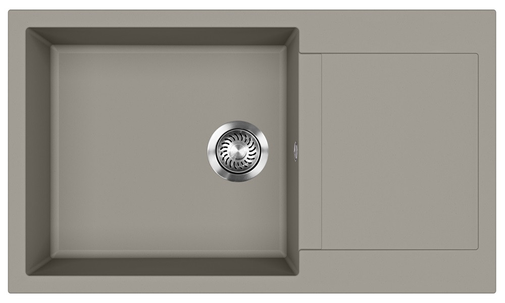 EVIDO Cubo XL 6S Compact beépíthető gránit mosogatótálca egymedencés + csepegtetős / 1 medencés + kicsi csepptálcás mosogató tálca, platina, középszürke / semleges szürke színű, 860x500 mm-es / 86x50 cm-es, 442060