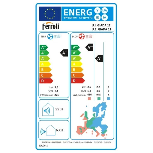 Ferroli Giada S12K 3,6 kW beltéri egység, FERRO