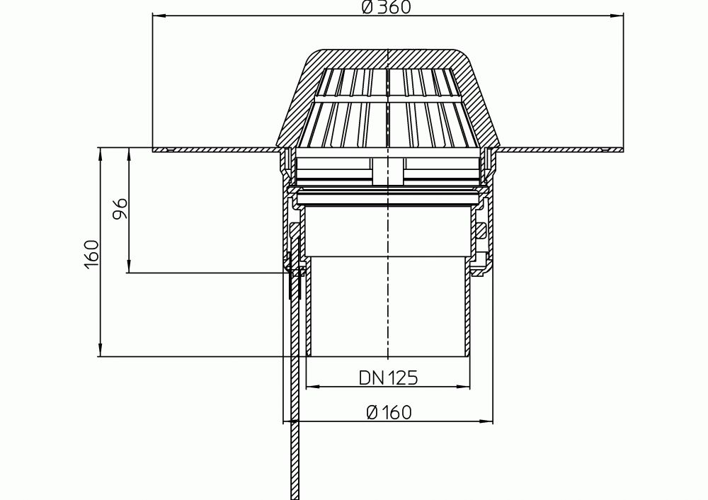 HL62.1P/2 SuperDrain lapostető lefolyó DN125, PVC karimával, fűtéssel (10-30W/230V).